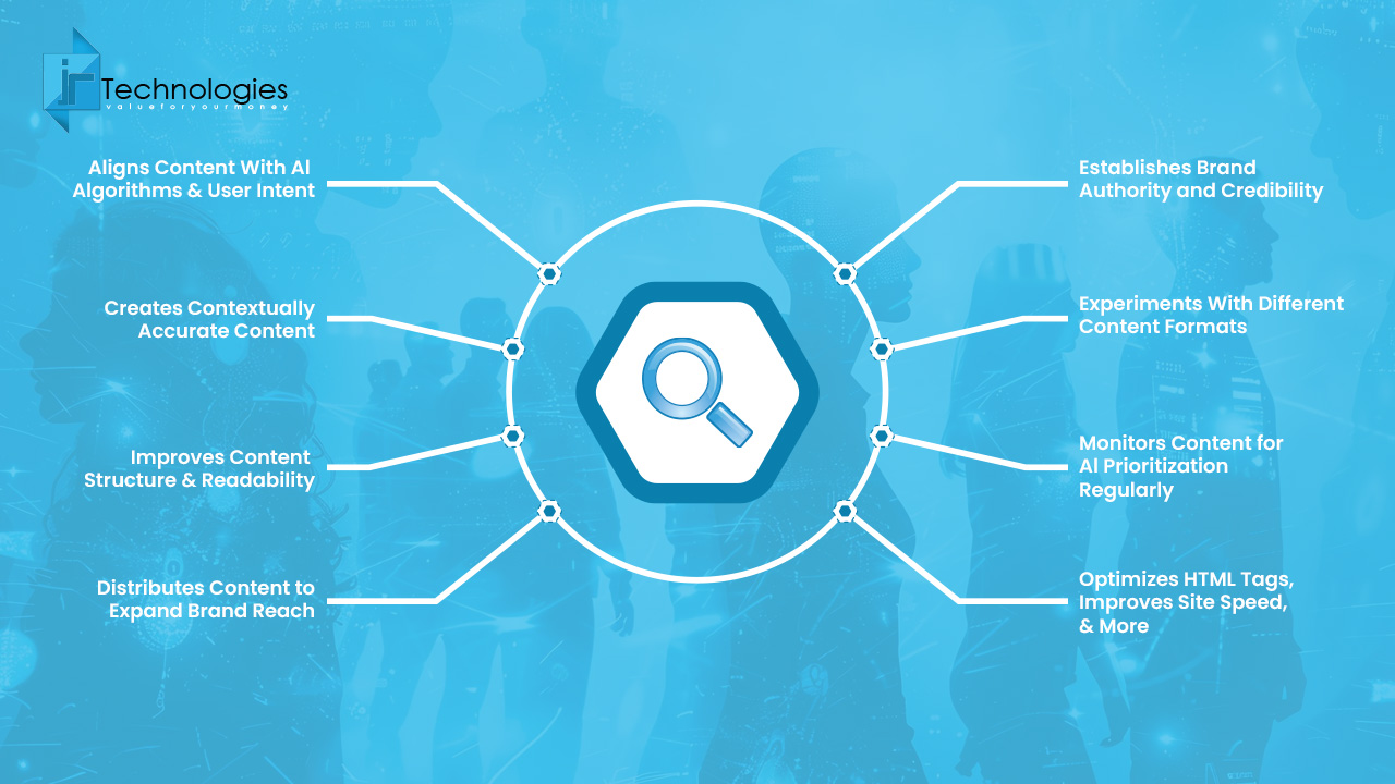 Start by making your content well-structured and semantically rich. Make use of clear, concise headlines, keywords and keyphrases variations that reflect how real users ask queries. Incorporate FAQs, summaries etc, in list format that makes extraction by AI easier.